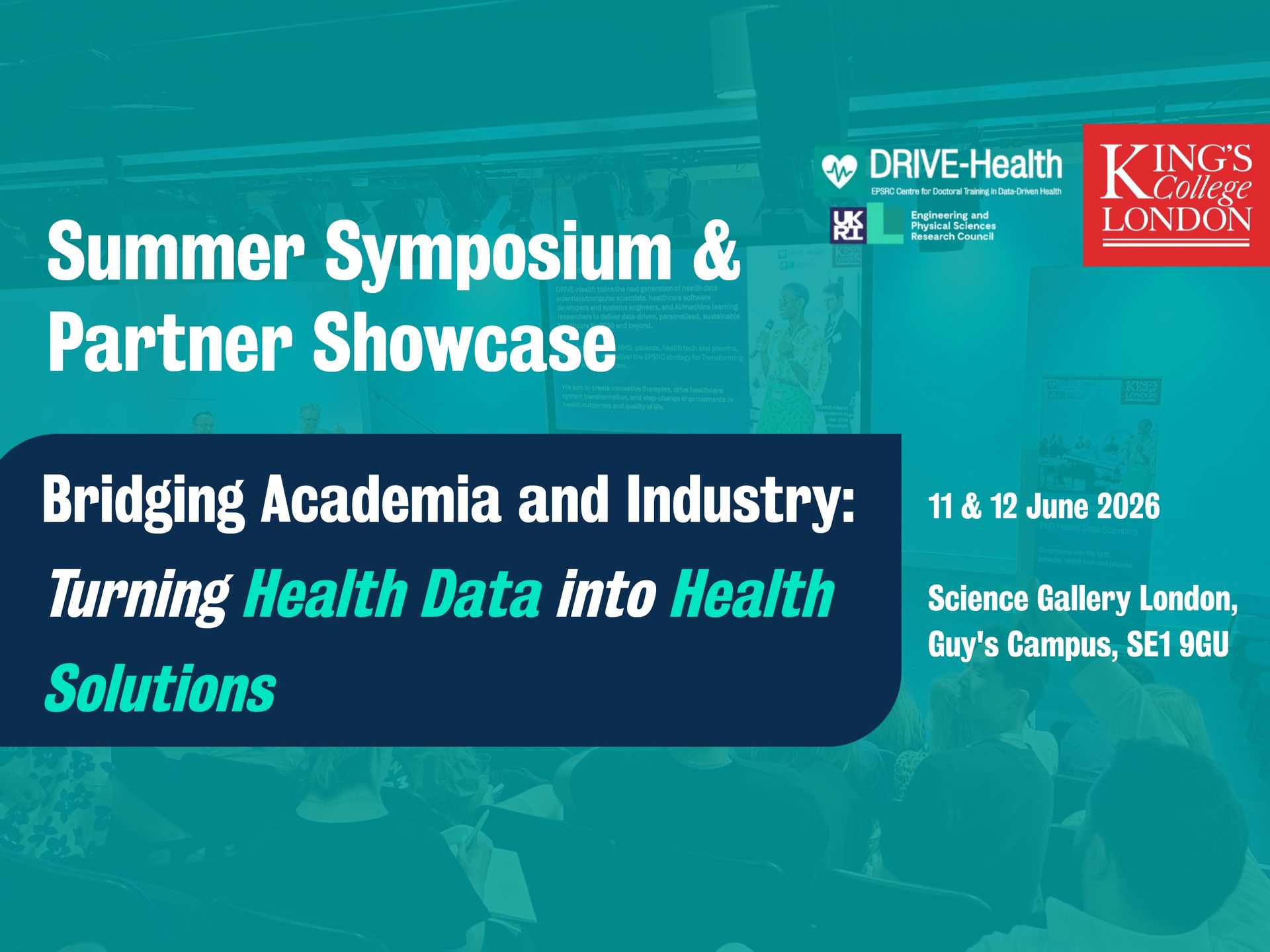 By registering for this event, you give consent to provide your name, e-mail address and registration information with King's College London for the purposes of managing the EPSRC DRIVE-Health CDT's Summer Symposium. Your personal data will be managed by those organisations and by Eventbrite according to their published privacy policies.